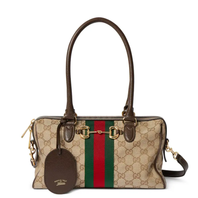 2026春夏系列全新上市。Gucci Borsetto系列名称巧妙融合意大利语“borsa”(手袋)和“morsetto”(马衔扣)二词。 这款手袋甄选轻盈挺括的GG帆布打造,以复古风格沙色配色匠心呈献,源自典藏的钻石菱格纹图案演绎全新衬里。